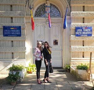 Marina i Marija Gobović ispred srpske gimnazije u Temišvaru